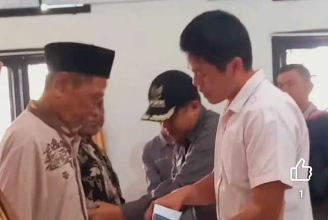 Camat Juremi Yudi dan Peratin Yundri saat membagikan BLT DD tahap II pada masyarakat yang masuk dalam KPM, Jum’at (19/9/2025). Foto: ist