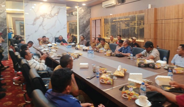 Bupati Nganjuk Marhaen Djumadi menggelar rapat bersama 52 Kepala Desa dan DPC PJI Kabupaten Nganjuk, Senin (22/9). Foto: istimewa