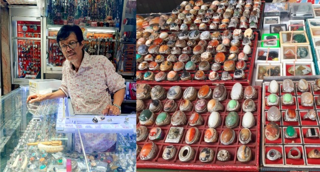 Pedagang batu mulia serta berbagai jenis akik ditawarkan di Kayon (foto: poedji)