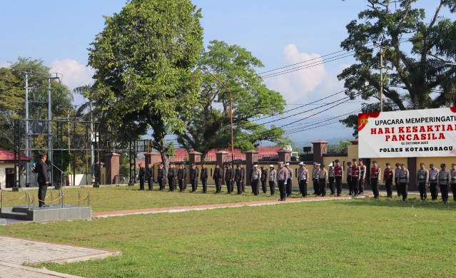 KOTAMOBAGU, BIDIKNASIONAL.com – Kapolres Kotamobagu AKBP Irwanto, SIK, MH menjadi inspektur upacara peringatan hari kesaktian Pancasila di lapangan upacara Mapolres Kotamobagu, Selasa (1/9/2025).