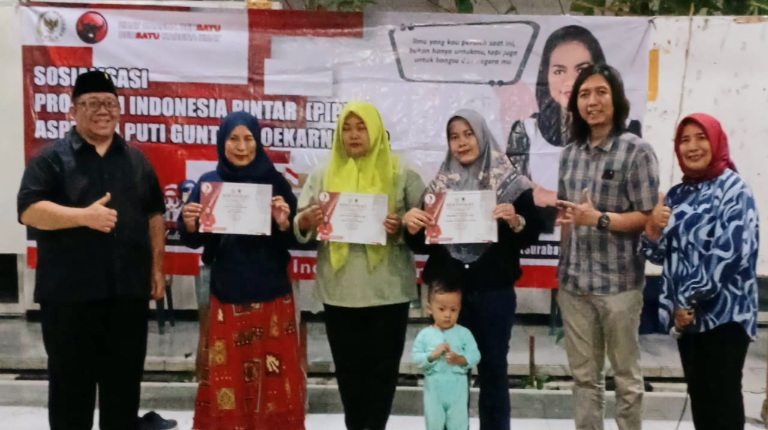 SURABAYA, BIDIKNASIONAL.com – Siti Indarti sebagai Koordinator Garda Puti Guntur Soekarno Kecamatan Rungkut, Kota Surabaya, telah mengawal kegiatan sosialisasi PIP (Program Indonesia Pintar) dan pembagian sertifikat PIP kepada penerima tahun 2025.