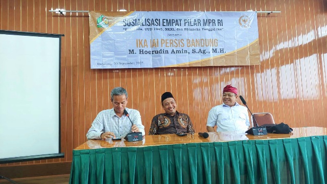 BANDUNG, BIDIKNASIONAL.com – Ikatan Keluarga Alumni (IKA) IAI Persis Bandung menggelar kegiatan Sosialisasi 4 Pilar Kebangsaan MPR RI yang dikolaborasikan dengan Seminar Pilar Peradaban di Kampus IAI Persis Bandung, Gedung B Lantai 3, Selasa, 30 September 2025.