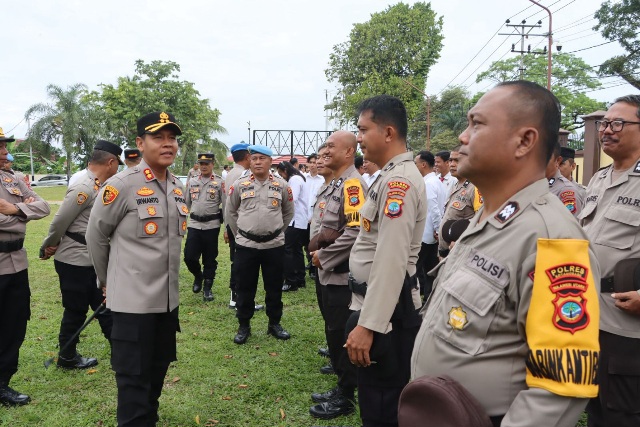 Kapolres menyampaikan pentingnya menjaga kerapihan dan kelengkapan pribadi sebelum melaksanakan tugas sebagai bagian dari Profesionalisme anggota Polri. (Arman)