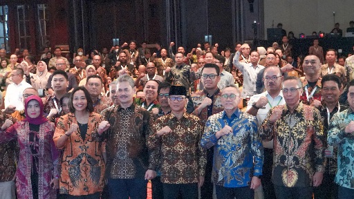 Para petinggi Pelindo dan anak perusahaan, pengusaha/ stakeholder, pimpinan instansi terkait kepelabuhanan, Kemen.Desa dan PDT menyaksikan penerimaan Awards 2025 PT. TTL. (Foto: Ist/Ak)