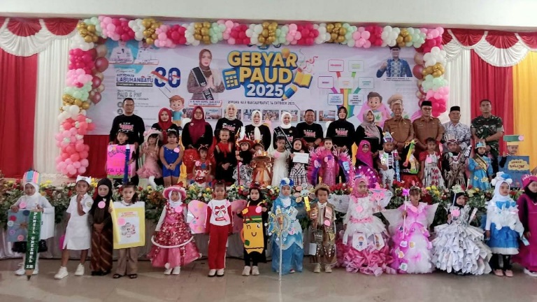 Hal tersebut disampaikan Bunda Maya Hasmita saat membuka Gebyar PAUD dalam rangka memperingati Hari Jadi ke-80 Kabupaten Labuhanbatu, yang digelar di Asrama Haji Rantauprapat, Kelurahan Ujung Bandar, Kecamatan Rantau Selatan, Selasa (14/10/2025).