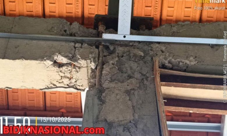 Selain masalah pengawasan, Joko juga menyoroti kualitas beton atau cor pada penyangga atap depan sekolah yang terlihat kurang padat. Ia menduga mutu beton tersebut tidak sesuai standar dan perlu diuji oleh tenaga ahli untuk memastikan kekuatannya.
