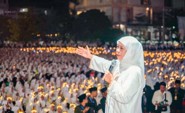 Selain itu, Khofifah mengajak seluruh jemaah mendoakan keselamatan bangsa Indonesia, khususnya Jawa Timur, agar senantiasa dalam lindungan Allah SWT, dijauhkan dari bencana, serta dijaga dari perpecahan.