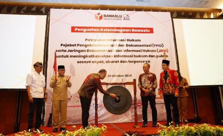 BANYUWANGI, BIDIKNASIONAL.com – Wakil Bupati Banyuwangi Mujiono menghadiri rakor Penguatan Kelembagaan Pelayanan Informasi Hukum yang digelar Badan Pengawas Pemilihan Umum (Bawaslu) Banyuwangi di el Hotel, Senin (20/10/2025). Dalam kesempatan itu, Mujiono berpesan agar Bawaslu semakin responsif terhadap kebutuhan informasi publik.