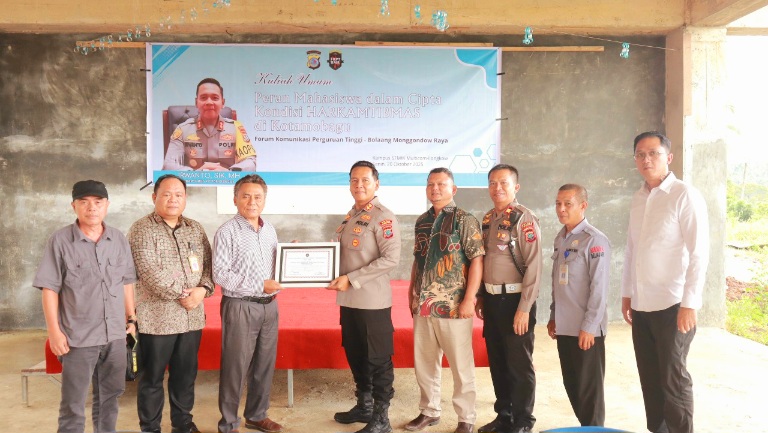 KOTAMOBAGU, BIDIKNASIONAL.com – Kapolres Kotamobagu AKBP Irwanto SIK, MH menjadi narasumber dalam kegiatan Dialog Kuliah Umum bertemakan “Peran Mahasiswa dalam Cipta Kondisi Harkamtibmas ” yang digelar oleh Forum Komunikasi Perguruan Tinggi Bolaang Mongondow Raya (FKPTBMR) yang berlangsung di Gedung Kampus STIMIK Multicom Kotamobagu, Puncak Ilongkow, Senin (20/10/2025).