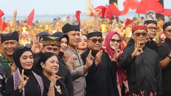 BANYUWANGI, BIDIKNASIONAL.com – Ribuan langkah penari Gandrung menghiasi tepian Pantai Marina Boom, menari serempak dalam irama budaya dan kebanggaan warga Banyuwangi.