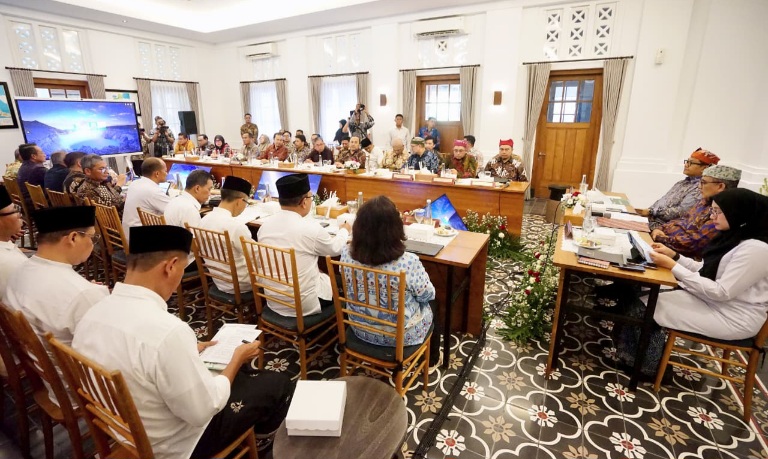 Rakor Pembangunan JLS berlangsung di Pendopo Sabha Swagata Blambangan Banyuwangi, Jumat (24/10/2025). Rakor dipimpin oleh Pimpinan Pemeriksaan Keuangan Negara VII Slamet Edy Purnomo, Pimpinan Pemeriksaan Keuangan Negara III Akhansul Khaq dan Bupati Banyuwangi Ipuk Fiestiandani.