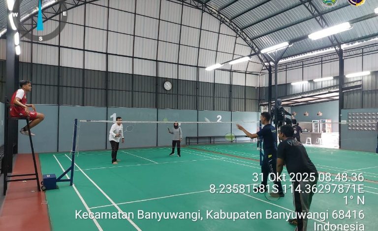 BANYUWANGI, BIDIKNASIONAL.com – Jumat sehat, UPT PPP LLAJ Banyuwangi, Dinas Perhubungan Provinsi Jatim menggelar olahraga Badminton di Gedung Badminton lingkungan LLAJ Banyuwangi, Jumat pagi 31 Oktober 2025.
