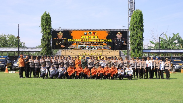 MADIUN, BIDIKNASIONAL.com – Kapolres Madiun AKBP Kemas Indra Natanegara, S.H., S.I.K., M.Si. memimpin pelaksanaan Apel Kesiapan Tanggap Bencana yang digelar oleh Polres Madiun dalam rangka meningkatkan kesiapsiagaan menghadapi potensi bencana alam di musim pancaroba, bertempat di Lapangan Tri Brata Mapolres Madiun, Senin (3/11/2025).
