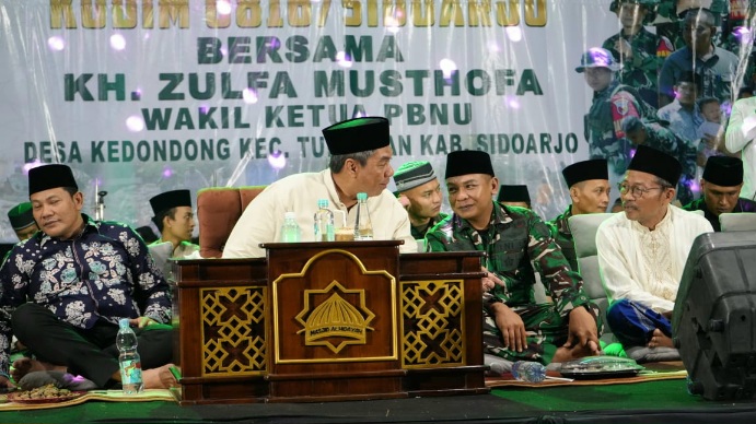 SIDOARJO, BIDIKNASIONAL.com – Kodim 0816 satgas TMMD ke-126, Suasana hangat dan penuh kebersamaan menyelimuti Balai Desa Kedondong, Kecamatan Tulangan, Kabupaten Sidoarjo, pada senin 3/11/2925 di malam penutupan kegiatan TNI Manunggal Membangun Desa (TMMD) ke-126 Tahun Anggaran 2025 yang digelar oleh Kodim 0816/Sidoarjo. Acara yang dikemas dalam bentuk pengajian dan malam keakraban ini menjadi penanda berakhirnya seluruh rangkaian kegiatan TMMD yang telah berlangsung selama beberapa minggu terakhir.