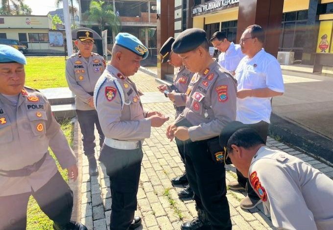 KOTAMOBAGU, BIDIKNASIONAL.com – Didampingi Wakapolres Kotamobagu Kompol Romel MC AJ. Pontoh,SIP, MAP serta Kasi Propam Ipda Jefry Askali, S.Sos, Tim Bid Propam melakukan pemeriksaan terhadap personel, bertempat di halaman Mapolres Kotamobagu, Rabu (12/11/2025).