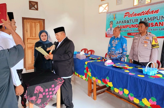 WAY KANAN, BIDIKNASIONAL.com – Berdasarkan Keputusan dan Kekuatan Hukum, Pemerintah Kampung Sunsang Kecamatan Negeri Agung Kabupaten Way Kanan melaksanakan pelantikan aparatur Kampung yang baru hasil penjaringan yang berlangsung di kantor Kampung setempat, Kamis (13/11/2025).