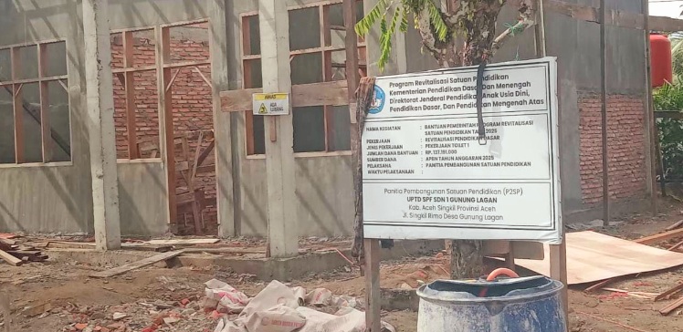 “Bahwa pembangunan ini dikelola oleh Panitia Pembangunan Satuan Pendidikan (P2SP) UPTD SPF SDN 1 Gunung Lagan, yang berlokasi di Kabupaten Aceh Singkil, Provinsi Aceh,” jelasnya.