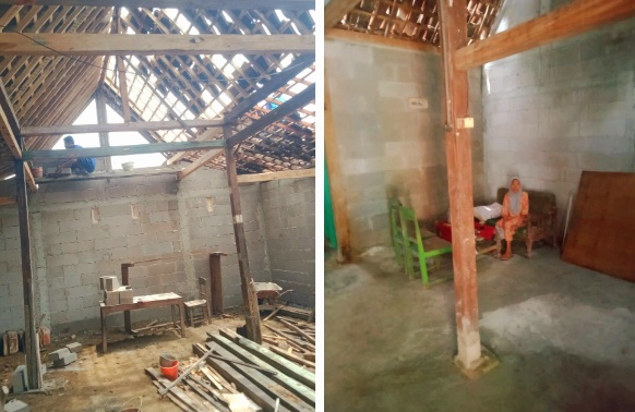 Saat di lokasi pengerjaan RTLH di rumah Ginem, tampak kondisi rumah sudah direhab namun suami Ginem menyampaikan tinggal pasang usuk. “Itu kayu usuk dan lokasi nya di dalam tinggal sak ampyak” tuturnya.