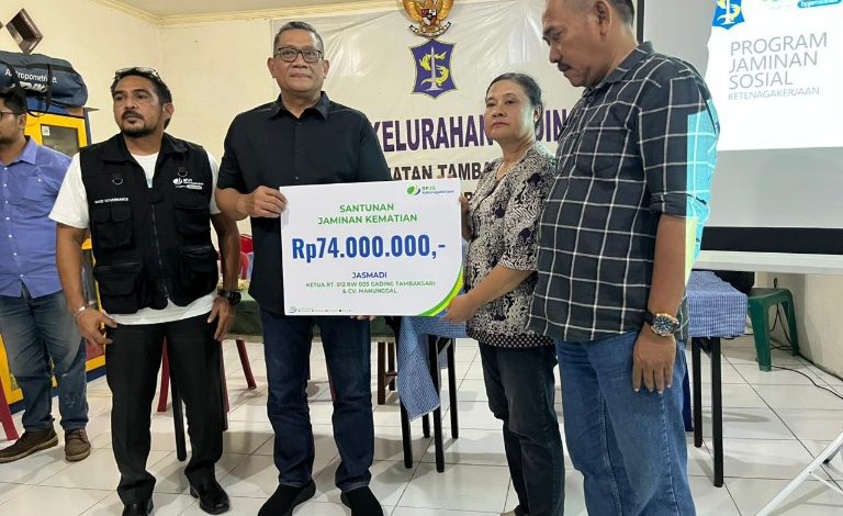 SURABAYA, BIDIKNASIONAL.com – BPJS Ketenagakerjaan Kantor Cabang Surabaya Karimunjawa mengadakan kegiatan Sosialisasi Program Manfaat BPJS Ketenagakerjaan dan Penyerahan Santunan yang berlangsung di Balai RW 07 Kelurahan Gading, Kecamatan Tambaksari. Kegiatan ini merupakan bagian dari upaya memperluas perlindungan jaminan sosial ketenagakerjaan bagi masyarakat, khususnya pekerja informal di wilayah tersebut.