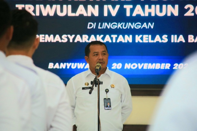 Acara tersebut dipimpin secara langsung oleh Kepala Lapas (Kalapas) Banyuwangi, I Wayan Nurasta Wibawa, dan dihadiri oleh seluruh pegawai, mulai dari pejabat struktural hingga staf, sebagai bentuk komitmen dalam meningkatkan kualitas kinerja dan pelayanan.