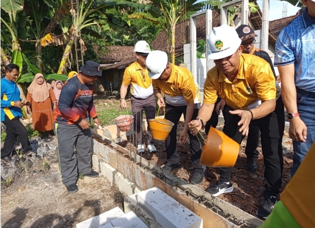Kemudian diteruskan dengan peletakan batu pertama secara simbolis pembangunan Sanitasi untuk 15 penerima manfaat dan peninjauan pembangunan Rumah Tidak Layak Huni (RTLH).