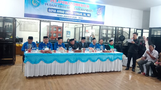 LABUHANBATU, BIDIKNASIONAL.com – Wakil Bupati Labuhanbatu H. Jamri ST melantik Ahmad Ansyari Siregar SH MH sebagai Direktur Perusahaan Umum Daerah Air Minum Tirta Bina Kabupaten Labuhanbatu masa jabatan 2025-2030, menggantikan Plt H. Saifuddin Zuhri SH MM di Kantor Pudam Tirta Bina Labuhanbatu Jl. W. R. Supratman, Rantau Utara, Jumat (18/12/2025).