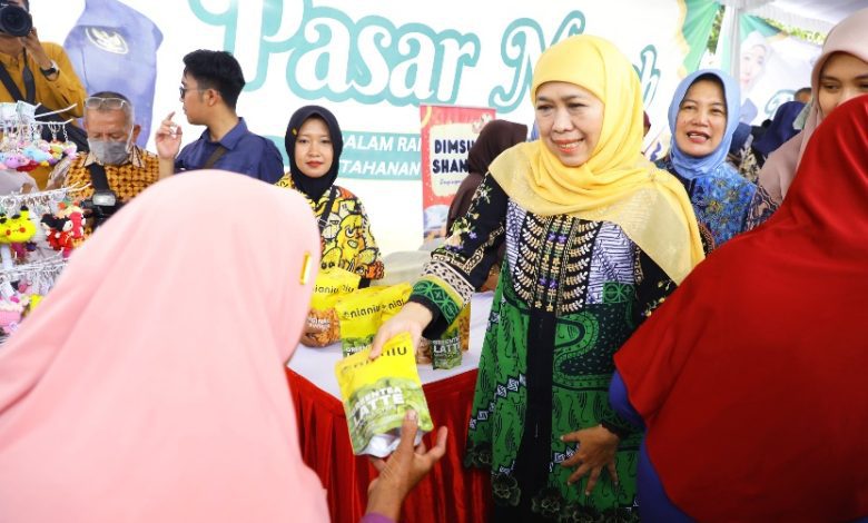 Khofifah saat berada di pasar murah tersebut (Foto: istimewa/BN)