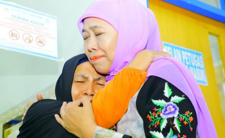 Khofifah saat memeluk seorang ibu (foto: istimewa/BN)