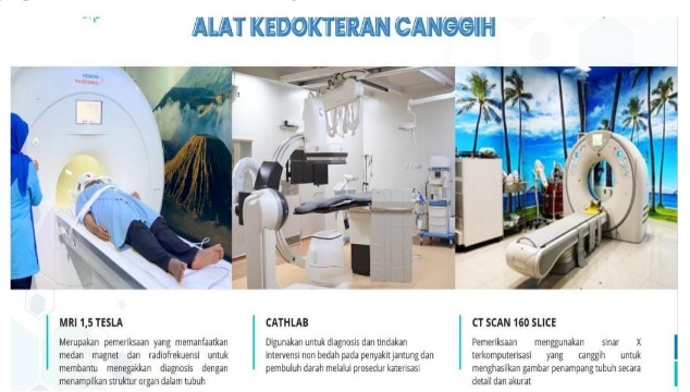 9.) Layanan Unggulan dengan alat alat canggih untuk pemeriksaan dan terapi bantuan dana cukai ; MRI 1,5 T, CT scan, ESWL, TMS, Neurofeedback, EEG, Bone Mass Densitometri (BMD), Body Impendance Analyzer (BIA) , Endoskopi, alat alat Hemodialisis, Unit Kateterisasi Jantung (Cath-Lab), C arm, Mobil keliling rumah sakit.