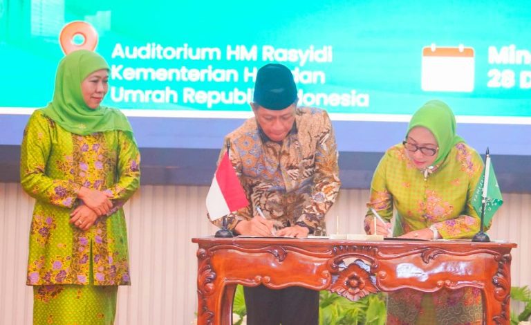 JAKARTA, BIDIKNASIONAL.com – Ketua Umum Dewan Pembina PP Muslimat NU, Khofifah Indar Parawansa menyaksikan penandatanganan Nota Kesepahaman (MoU) tentang Sinergitas Perlindungan Dan Pengelolaan Lingkungan Hidup antara Pimpinan Pusat Muslimat Nahdlatul Ulama (NU) dengan Kementerian Lingkungan Hidup (KLH) Republik Indonesia di Auditorium KH. M. Rasjidi, Kementerian Agama RI, Jakarta, Minggu (28/12).