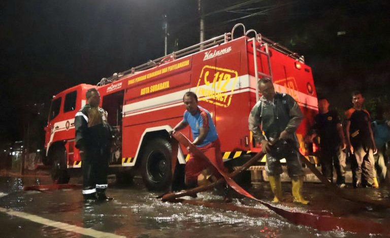 Puluhan Armada Damkar dan DLH Surabaya Atasi Genangan di Sejumlah Kawasan