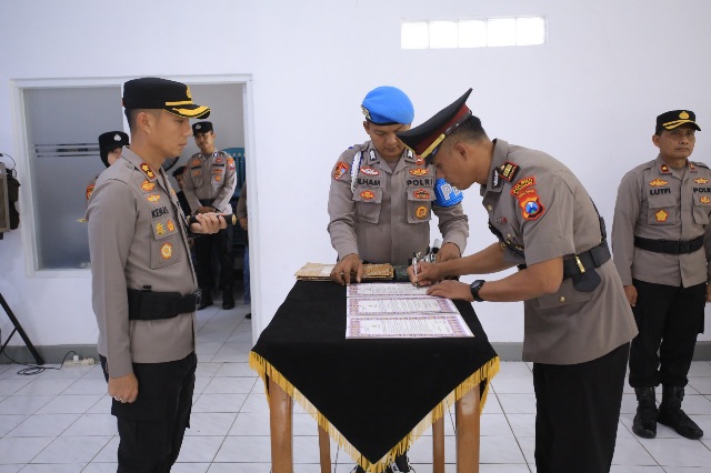 Sertijab Kapolsek Kare, dari pejabat lama AKP Dadang Arif P, S.H. kepada pejabat baru AKP Gunawan, S.H., M.H.