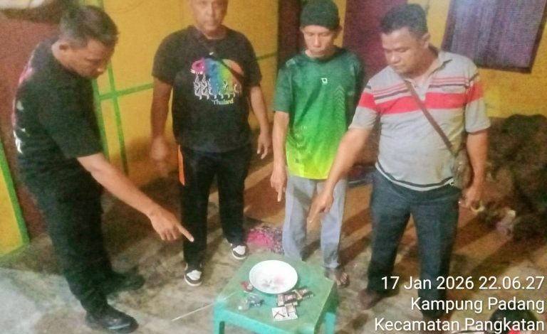 LABUHANBATU, BIDIKNASIONAL.com –  Adanya laporan masyarakat, Personil Polsek Bilah Hilir bersama perangkat desa dan warga sekitar melaksanakan Giat Patroli dan Gerebek Sarang Narkoba (GSN) di Dusun 8 Alur Naga Pasar, Desa pangkatan, Kecamatan Pangkatan, Kabupaten Labuhanbatu, Sabtu 17 Januari 2026 sekira pukul 21.45.WIB malam.