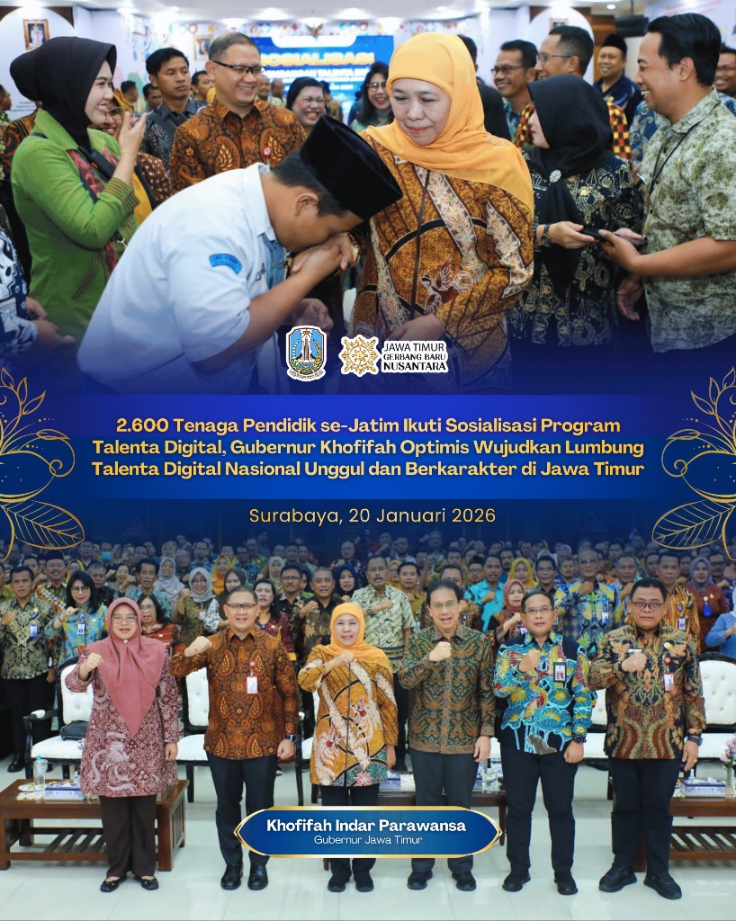 “Melalui sosialisasi ini, saya mengajak seluruh pemangku kepentingan untuk menjadikan pengelolaan talenta digital sebagai gerakan bersama. Pemerintah Provinsi Jawa Timur akan terus memastikan setiap kebijakan dan inovasi pendidikan berkontribusi nyata pada lahirnya generasi Jawa Timur yang unggul, berdaya saing, dan berkarakter, sekaligus menjadi pilar utama Indonesia menuju negara maju dan berdaulat secara digital,” pungkasnya.