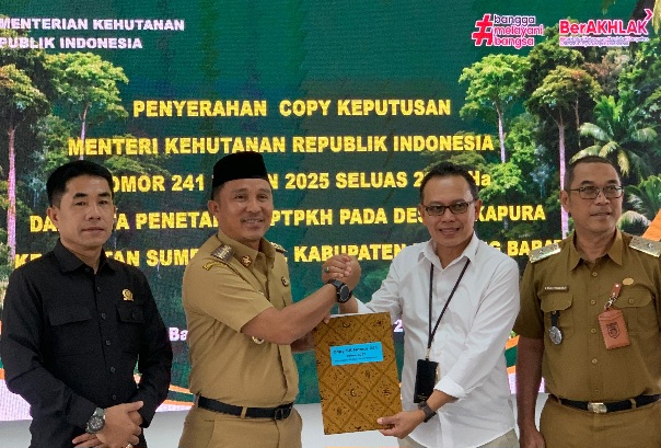LAMPUNG BARAT, BIDIKNASIONAL com – Pemerintah Kabupaten Lampung Barat menerima salinan Keputusan Menteri Kehutanan Republik Indonesia Nomor 241 Tahun 2025 tentang penetapan batas areal pelepasan sebagian kawasan hutan produksi tetap, dalam rangka penyelesaian penguasaan tanah pada kawasan hutan (PPTPKH) Provinsi Lampung Tahap I untuk sumber objek reforma agraria (TORA).