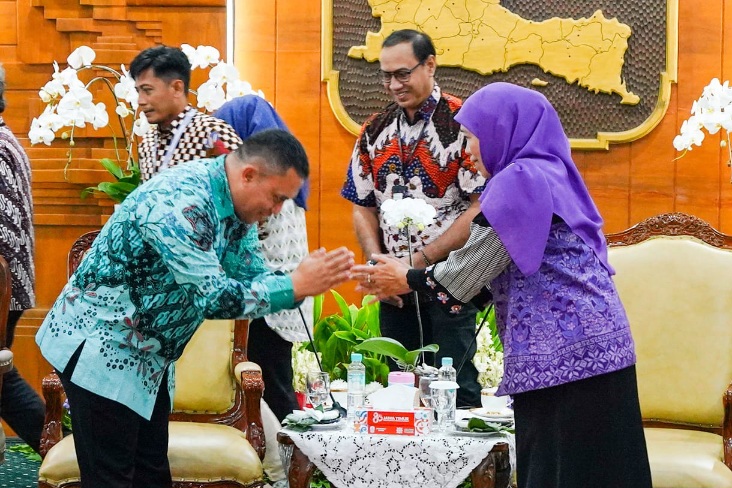 Gubernur Khofifah saat menerima tamu dari TVRI Jatim di Gedung Grahadi (foto: istimewa/BN)