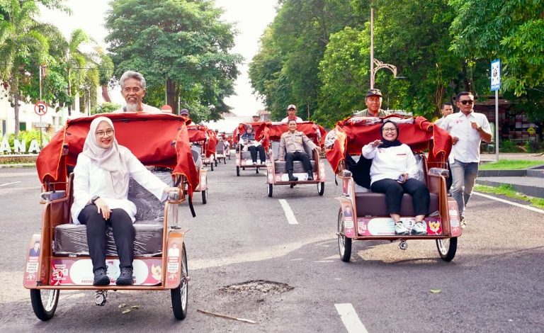Bupati Ipuk Serahkan 200 Becak Listrik Bantuan Presiden ke Pengemudi Becak Lansia Banyuwangi