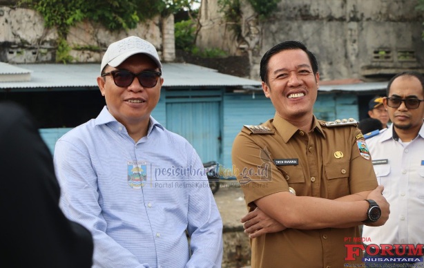 Bupati Pesisir Barat, Dedi Irawan dan komisaris pusat PT. ASDP Indonesia Ferry (Persero), Achmad Baidowi disela peninjauan Pelabuhan Kuala Stabas, Senin 26/1/2026 (Foto: doc.Diskominfotiksan Pesibar)