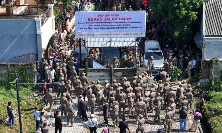 Momen saat proses pembongkaran tembok pembatas di Mutiara Regency. (Foto: ist)