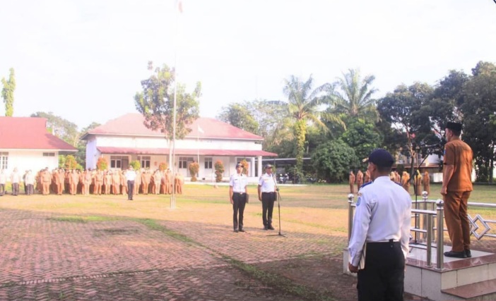Turut hadir Staf Ahli Bupati Turing Ritonga, Para Asisten Setdakab, Para Pimpinan OPD dan Peserta Apel Gabungan Kelompok I di lingkungan Pemerintah Kabupaten Labuhanbatu. (M.SUKMA)