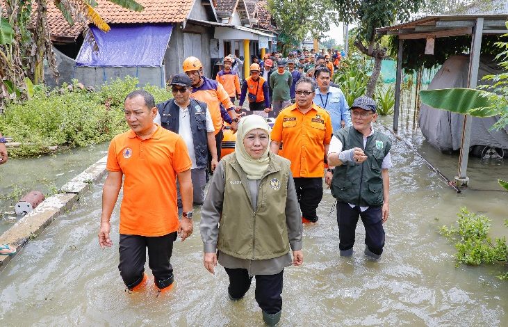 Gubernur Khofifah dan rombongan BPBD Jatim saat meninjau daerah terdampak banjir (foto: ilustrasi-istimewa)