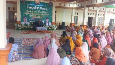 Kepala Desa Pancur, H. Lulus Pujiono saat memberikan sambutan di acara pengajian umum di pendopo Balai Desa Pancur pada Minggu,…