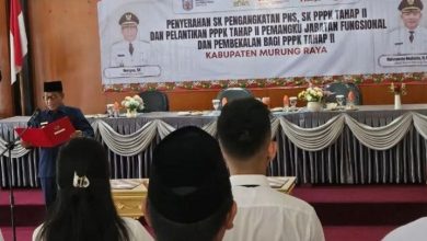 Bupati Murung Raya, Heriyus saat melantik sekaligus menyerahkan surat keputusan (SK) pengangkatan kepada PPPK tahap II formasi 2024. (efn) MURUNG…