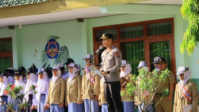 Kapolres Madiun, AKBP Kemas Indra Natanegara, S.H., S.I.K., M.Si., menjadi pembina upacara bendera di sekolah tersebut pada Senin (15/9). Foto:…