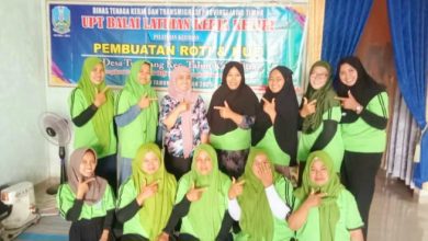 Para anggota Fatayat NU Kecamatan Talun saat mengikuti Pelatihan Pembuatan Roti dan Kue yang digelar UPT BLK Kediri bekerjasama LPK…