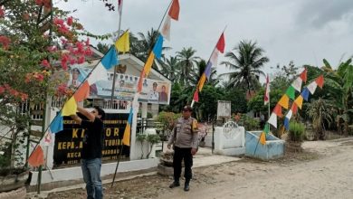 Semarakkan HUT RI Ke-80, Bhabinkamtibmas Polres Labuhanbatu Ajak Warga Pasang Bendera dan Umbul-Umbul