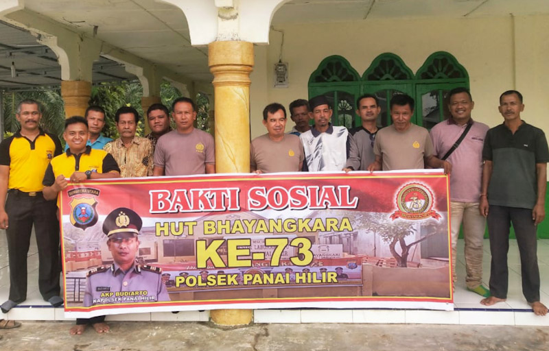 LABUHANBATU, SUMUT, BN-Kapolsek Panai Hilir, AKP Budiarto bersama personel dan pengurus masjid melaksanakan bakti sosial membersikan Masjid Jamik Nurul Huda…