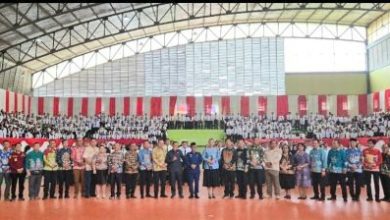 Para anggota DPRD Mura ikut menyaksikan Penyerahan SK pengangkatan kepada PPPK Paruh Waktu oleh Bupati Heriyus, di Gor Tana Malai…