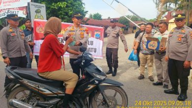 LABUHANBATU, BIDIKNASIONAL.com – Sat Lantas Polres Labuhanbatu di bawah pimpinan IPTU Muhammad Rizal melaksanakan kegiatan “Polantas Menyapa dan Jumat Berkah…