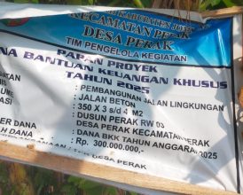 Papan Proyek Bantuan Keuangan Khusus (BKK) di Dusun Perak, Desa Perak, Kecamatan Perak (Foto: ist) JOMBANG, BIDIKNASIONAL.com – Proyek desa yang…